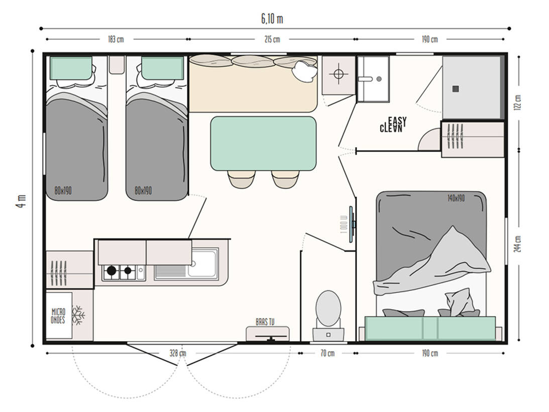 Mobil-Home 2 chambres, isolation renforcée.